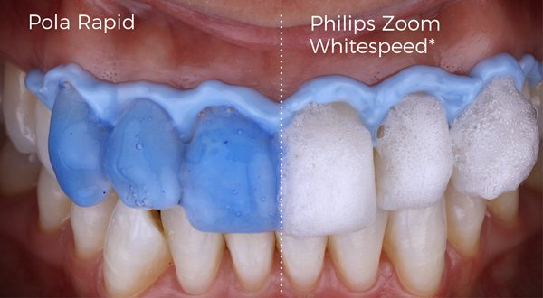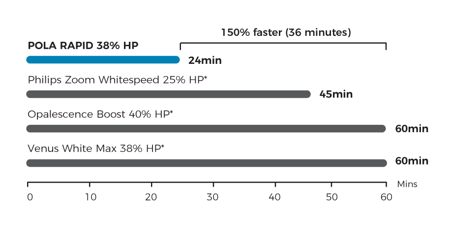 یک فرمول منحصر به فرد 38 درصد پراکسید هیدروژن که بلافاصله مواد فعال را آزاد می کند. پولا راپید تنها در یک بار ویزیت، یک درمان سفید کننده قوی را آغاز می کند که برای سفید کردن دندان ها در 24 دقیقه طراحی شده است. هیچ مرحله پیش حساسیت زدایی لازم نیست.