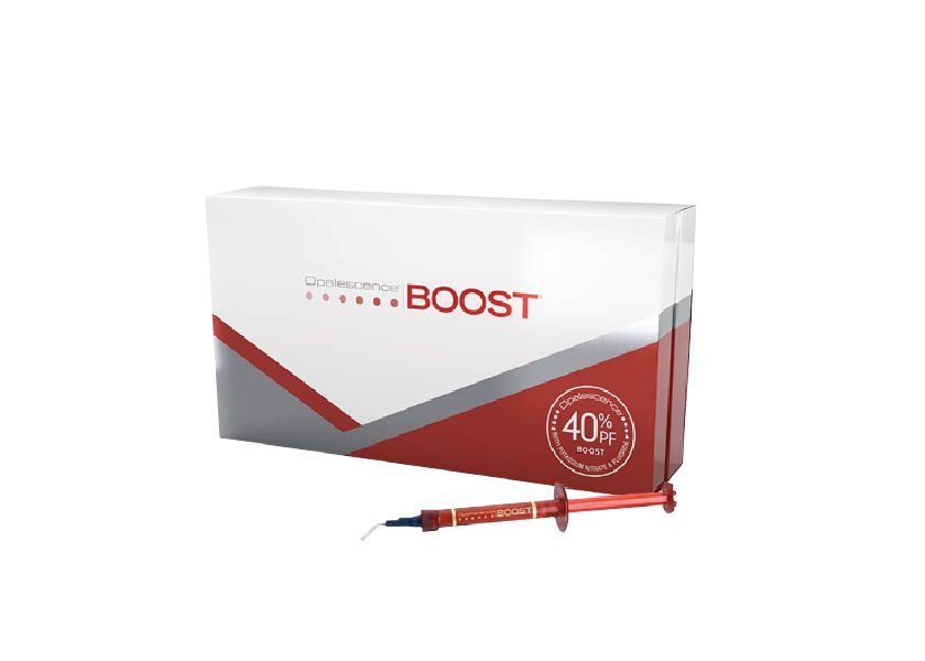 کیت بلیچینگ هیدروژن پروکساید BOOST 40% در بستهبندی 2 سرنگی قرار دادهشده است. این کیت برای 1 بیمار و دو فک مورد استفاده است.