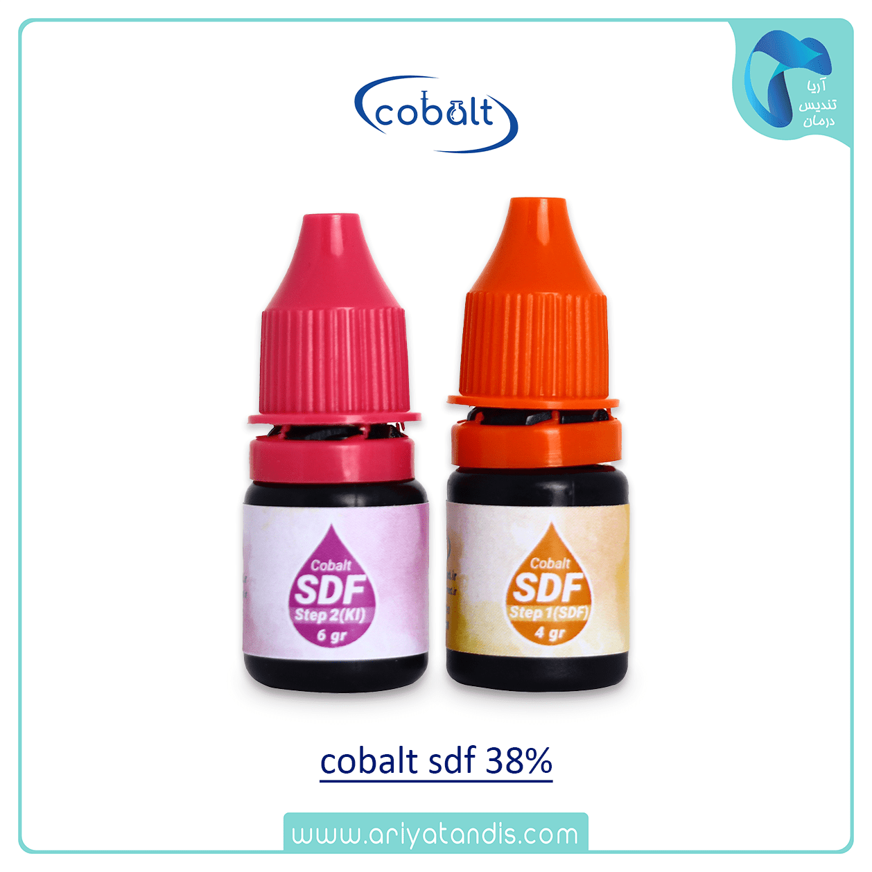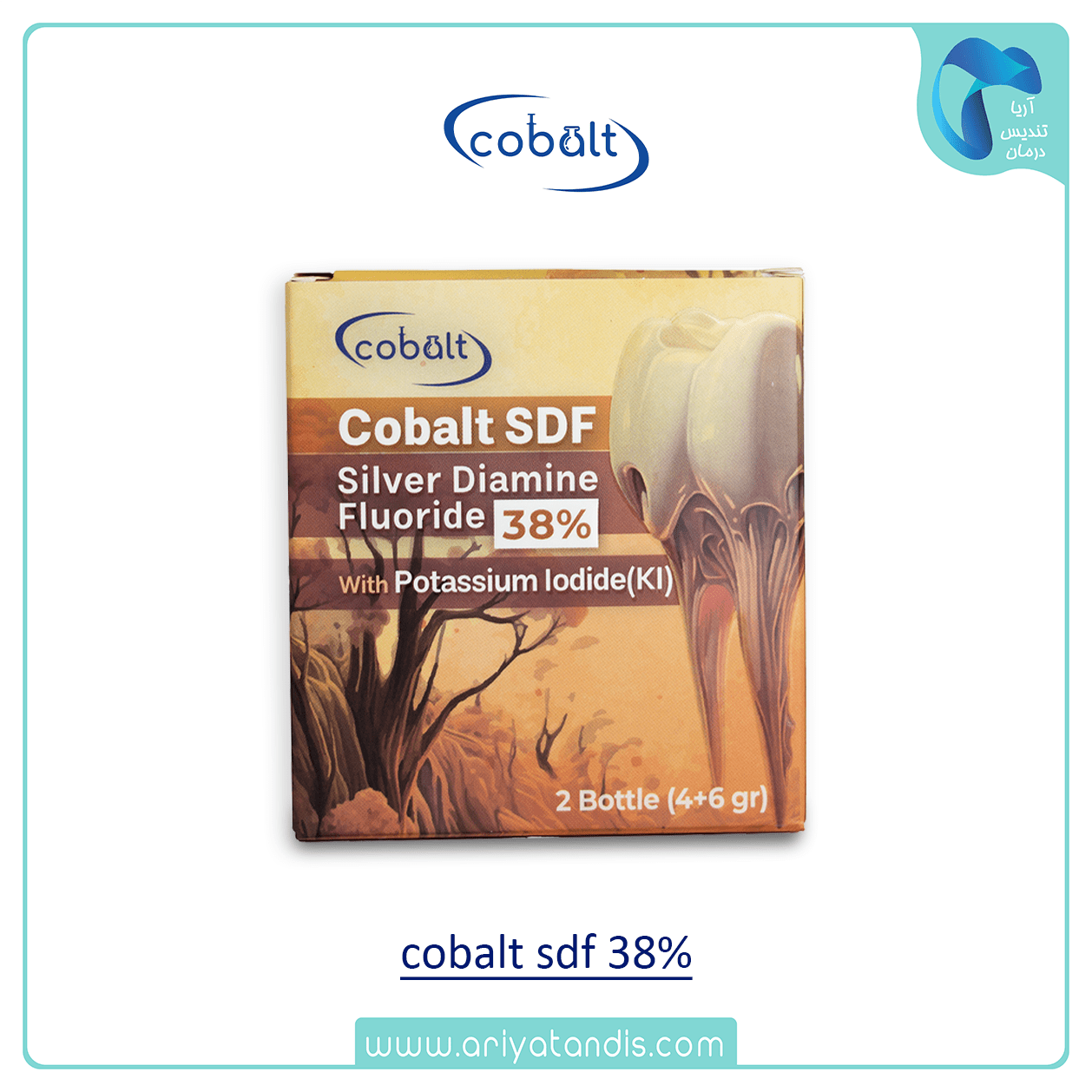 محلول نقره فلوراید 38% کبالت ( Cobalt SDF 38%+KI) ماده ای حاوی نقره و فلوراید است که به عنوان عامل ضد حساسیت در پوسیدگی های عاجی استفاده می شود. این محصول همچنین می تواند به عنوان متوقف کننده پوسیدگی های شدیدا پیش رونده (rampant caries) استفاده شود. محلول بطری دوم در این محصول حاوی پتاسیم یداید است که میتواند در صورت استفاده صحیح باعث کاهش تغییر رنگ در دندان شود. موارد استفاده: توقف پوسیدگی های سریع پیش رونده رفع حساسیت عاج سرویکالویژگی های این محلول: